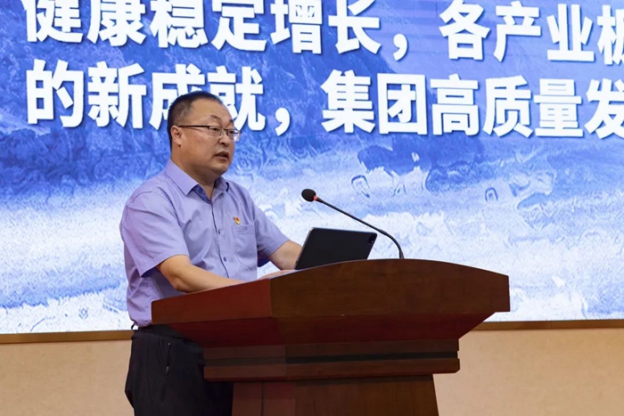會議伊始,與會人員首先觀看了2023年《凝聚非凡偉力,堅守初心前行》半年總結主題視頻,之后,集團總裁劉兆志對2023年上半年經營情況作了全面總結。