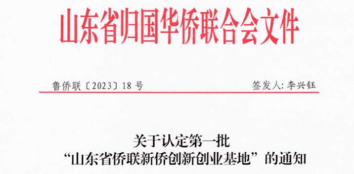 集團(tuán)獲評(píng)首批“山東省僑聯(lián)新僑創(chuàng)新創(chuàng)業(yè)基地”