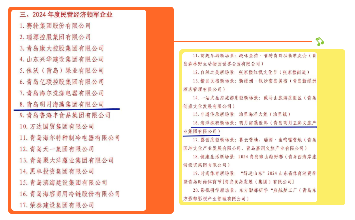 蛇年新春伊始,青島明月海藻集團捷報頻傳,集團喜獲西海岸新區2024年度“民營經濟領軍企業”稱號,隱珠街道“2024年度經濟運行先進單位”“財政貢獻先進單位”稱號;集團工會榮獲“2024年度十佳民營企業工會組織”稱號;海藻世界景區海洋探秘新場景入選西海岸新區“2024年度文旅新場景優秀案例”;集團黨委書記、董事長張國防榮獲隱珠街道“2024年度十佳民營企業家”榮譽稱號。